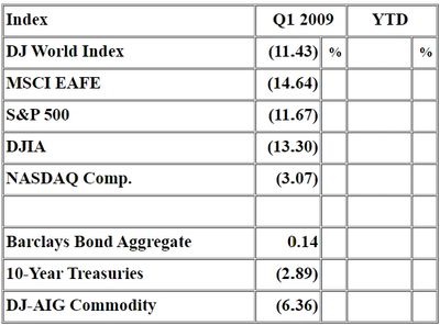 Investing While Under the Influence…..of Panic.  At the recent market lows of March 9, 2009, global stock markets hit their lowest levels since 1997, thereby erasing more than a decade of gains in just 16 months.  A strong rebound in late March still left the S&P 500 11.7% below the beginning of 2009, though a marked improvement from the negative 26% plumbed just three weeks earlier.  Nevertheless, Q1 was the sixth consecutive quarterly decline since the Dow hit its all-time high in October 2007. The equity markets have not had such a long losing streak since June 1970.